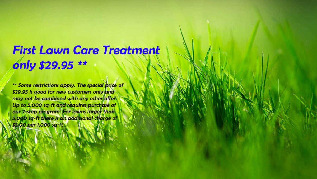 ** Some restrictions apply. The special price of $29.95 is good for new customers only and may not be combined with any other offer. Up to 5,000 sq-ft and requires purchase of our 7-step program. For lawns larger than 5,000 sq-ft there is an additional charge of $3.00 per 1,000 sq-ft